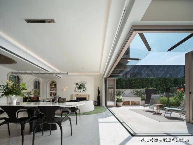 这个270°的转角玻璃是可以打开的,打开后花园与室内空间无界相连,让居者与自然的“无间亲密重新回归。
