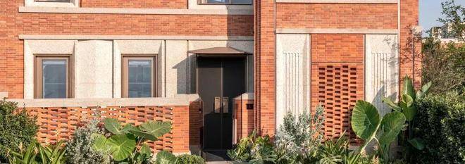 每一处细节都可以看出翠湖滨江的极尽用心——精巧的红砖镂空景墙、房檐上隐约可见的山茶花雕花、极具海派韵味的石库门、石材斜切面的窗套。